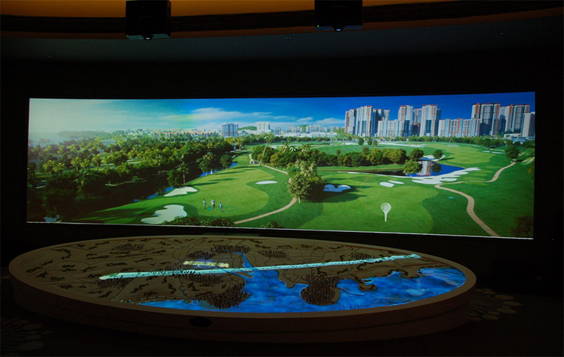 能展現(xiàn)城市中的建筑物、軌道交通、花草樹木、四季變化以及未來發(fā)展等信息,沙盤制作技術(shù)人員利用計(jì)算機(jī)中的沙盤制作軟件結(jié)合沙盤技術(shù)制作而成的內(nèi)容,通過投影投射到屏幕上展現(xiàn)。