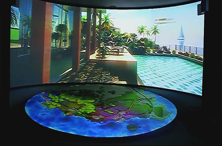 在城市規(guī)劃館中,為了能夠更好的展示城市的面貌,很多規(guī)劃館會(huì)選擇弧幕投影來(lái)展示城市的風(fēng)采。因?yàn)榛∧煌队俺蟮漠?huà)面以及震撼的視聽(tīng)感受都能讓人充分的感受城市的風(fēng)光以及發(fā)展宏圖。